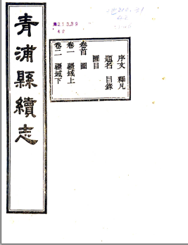[民国]青浦县续志二十四卷首一卷末—卷于定等修 金咏榴等纂民国二十三年刻本