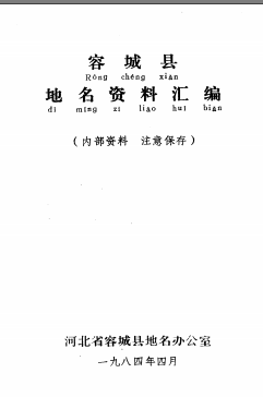 编纂单位:河北省容城县地名办公室