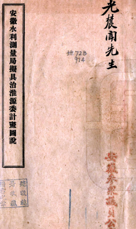 书名: 安徽水利测量局拟具治淮源委计划图说 安徽水利測量局編 民國八年[1919]皖江同文印書館 鉛印本