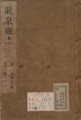 浙江省丽水市地方志,顺治龙泉县志 十卷 清 徐可先 修 胡世定 付梦籲 纂 清 顺治12年刻本。徐可先(1615-1689),字声服,别号梅溪,江南省常州府武进县(今属江苏常州市)人,考讳廷瑞,母蒋太恭人,乙酉举于乡,清朝初年政治人物。经历顺治四年(1647年)丁亥科第三甲第一百十二名同进士出身。授直隶束鹿县知县,有平定盗匪功绩。