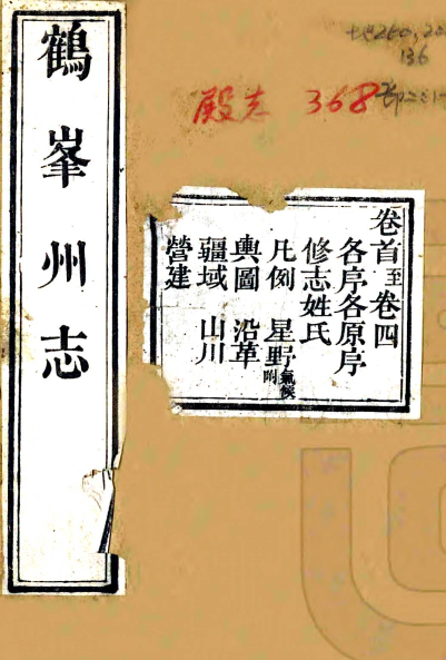 书名:[道光]鹤峰州志十四卷首一卷(清)吉鍾穎修 (清)洪先壽纂 清道光二年(1822)刻本