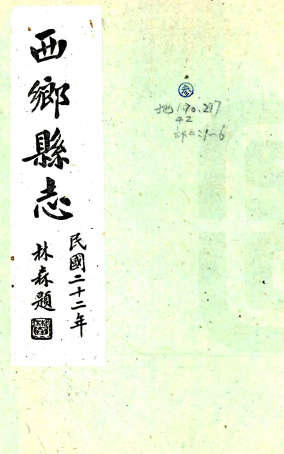 书名: [民国]西乡县志二十卷 薛祥綏[纂] 民國三十七年石印本