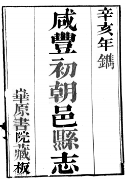 咸丰初朝邑县志三卷附志例一卷志例后录一卷(清)李元春纂清咸豐元年(1851)華原書院刻本