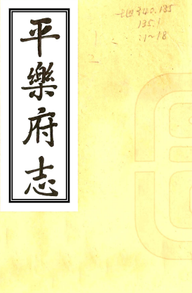 书名: [嘉庆]平乐府志四十卷首一卷(清)清柱 (清)王人作纂修 清光緒五年(1879)刻本
